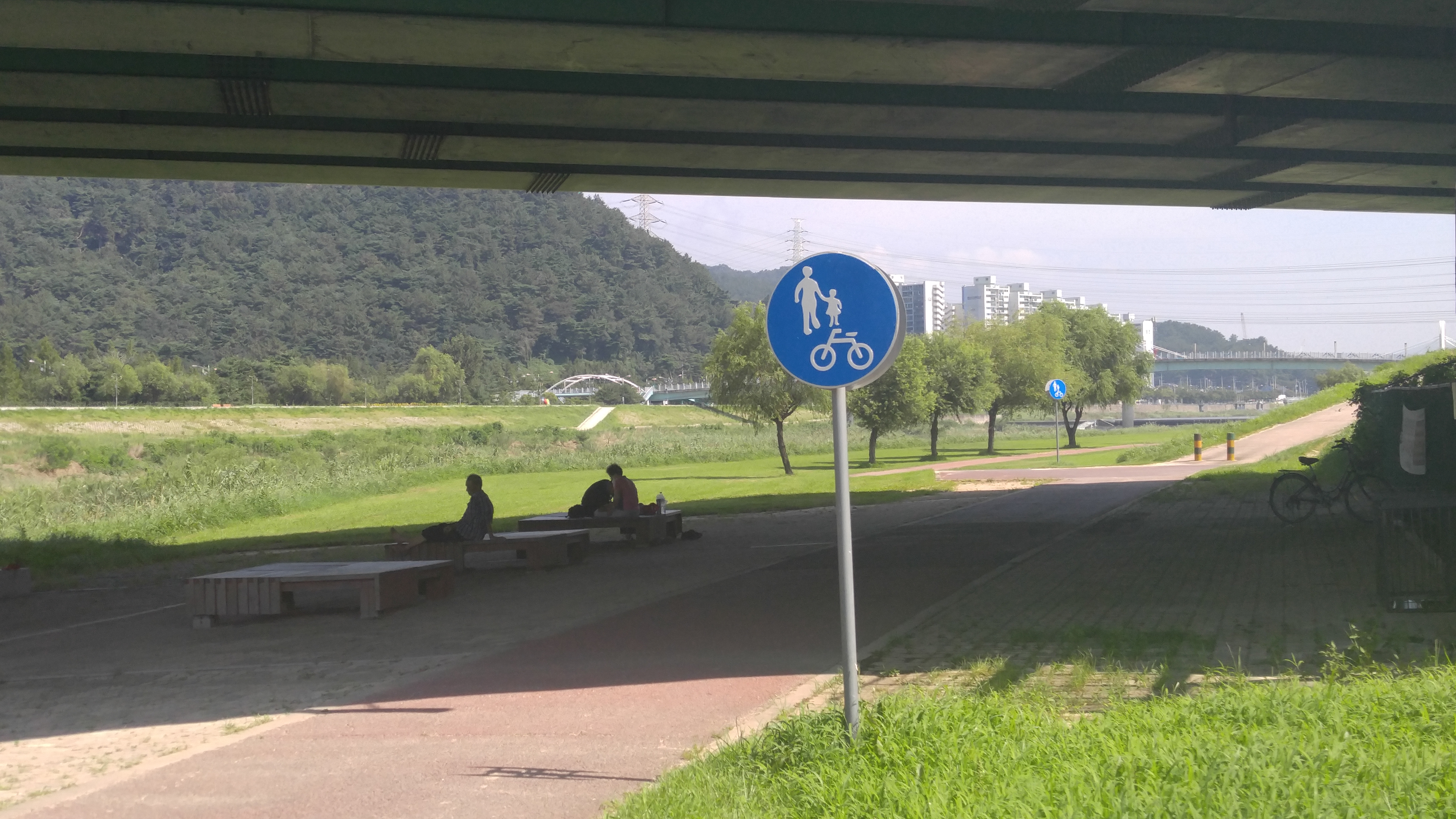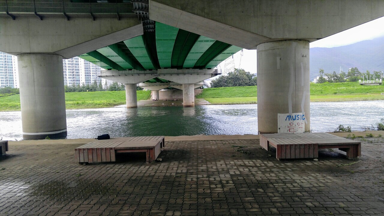 숲길 따라 삽량교 다리 밑에서 휴식..