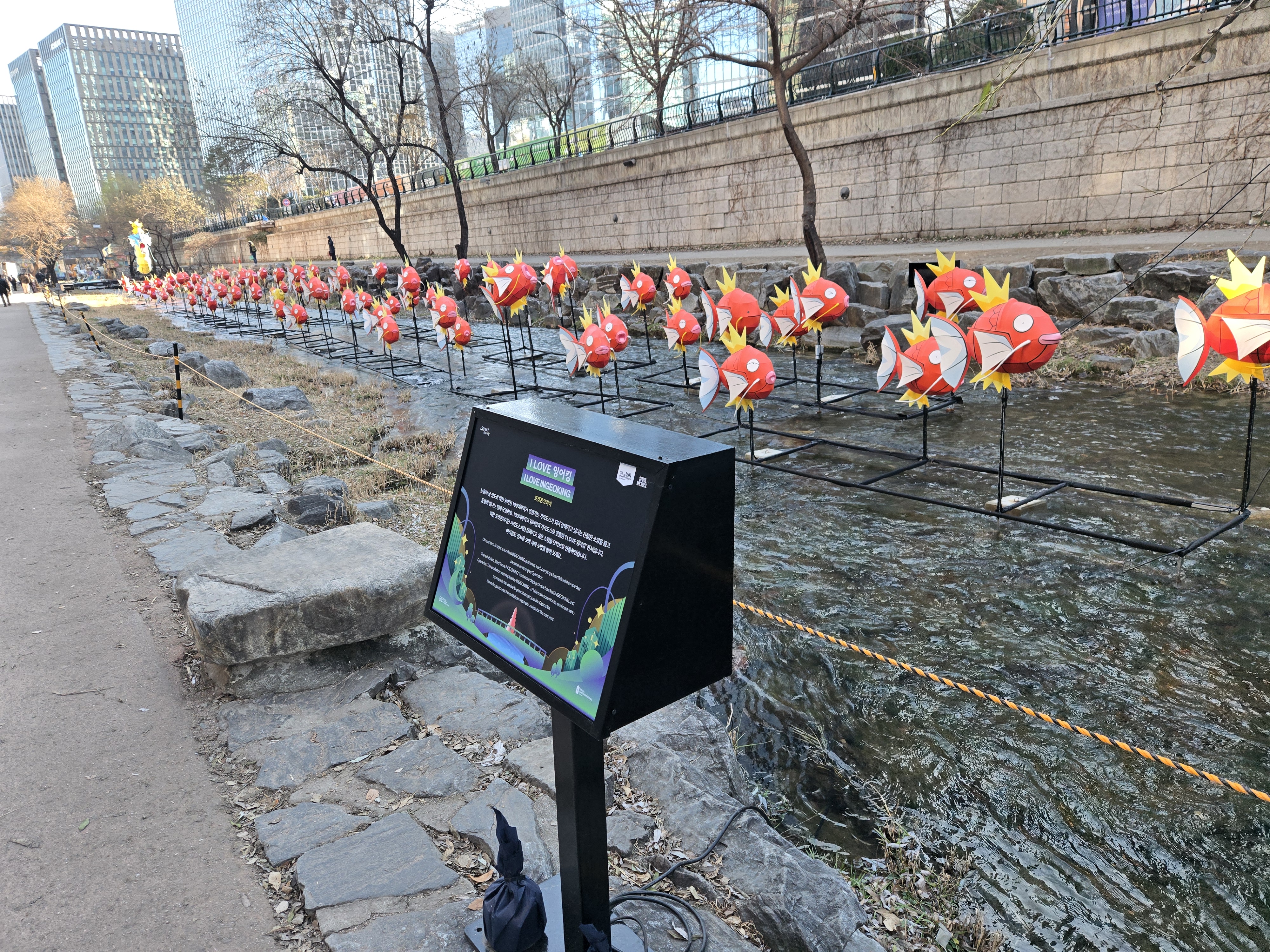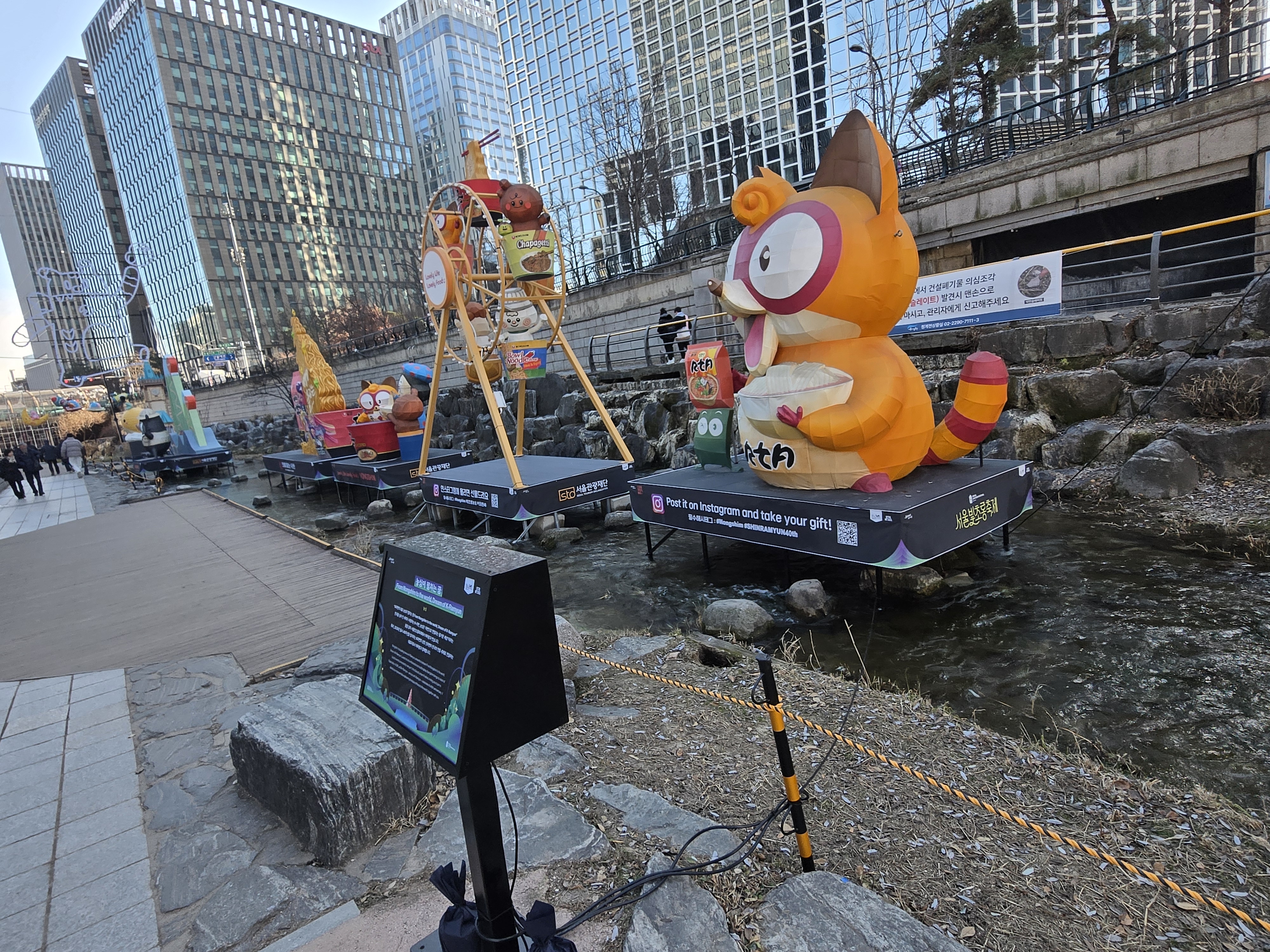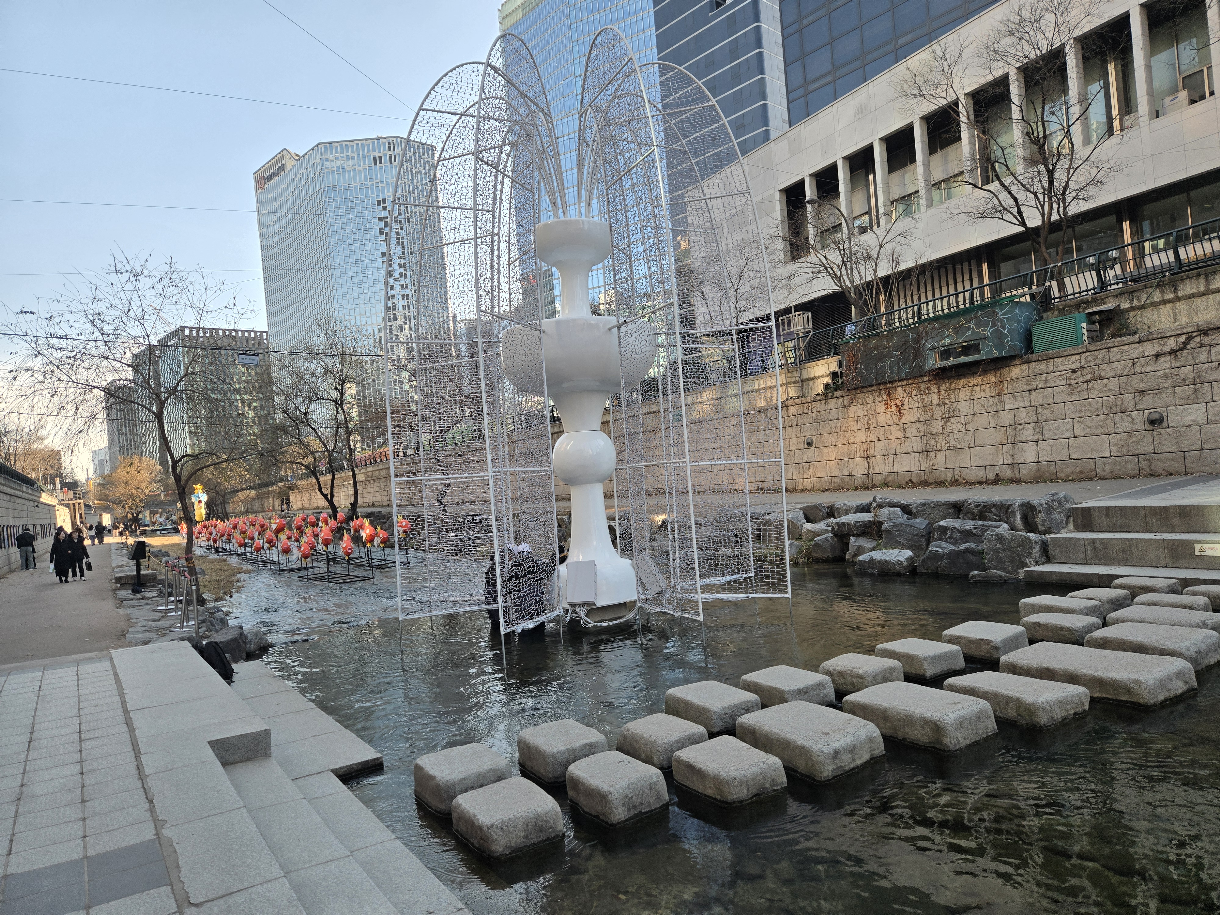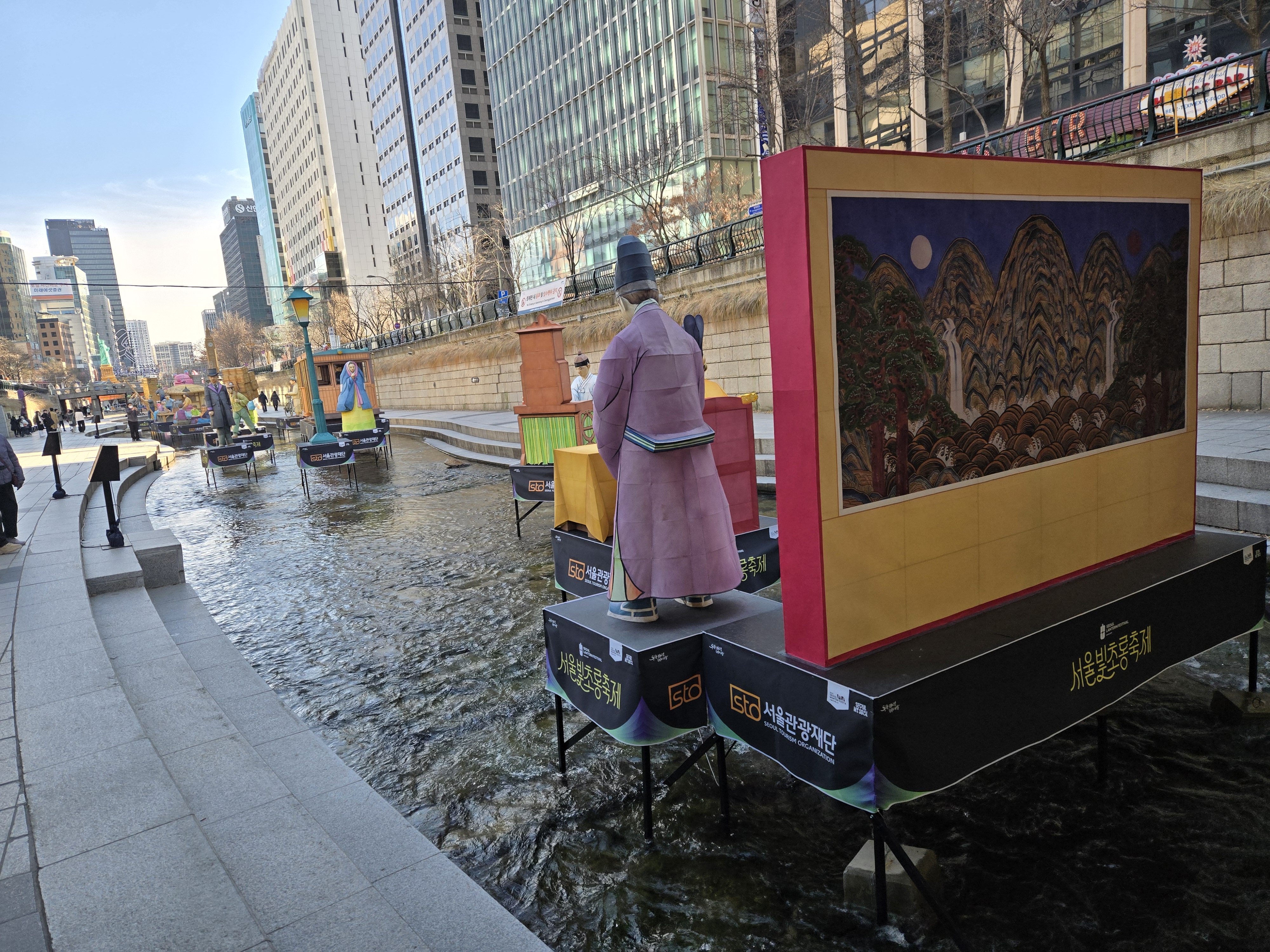 빛 조형물 전시: 청계천과 우이천을 따라 설치된 400여 점의 빛 조형물들이 환상적인 겨울밤 분위기를 연출합니다.